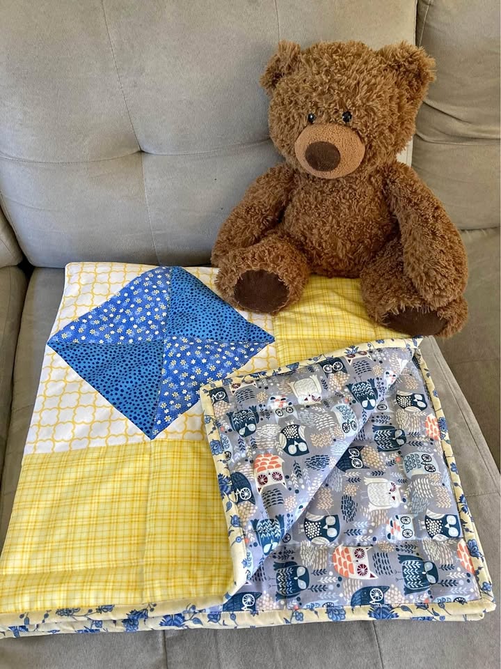 Homemade patchwork baby quilt 38” x 38” unisex